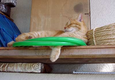 いつもの縄より、今日はビニールホースが丁度いい。くつろげるんだな、これが。