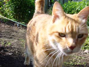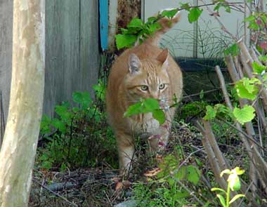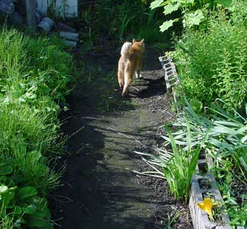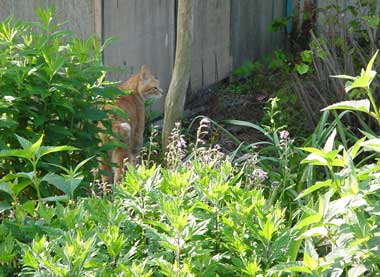 草がたっぷりある庭はネコの大好きな場所。